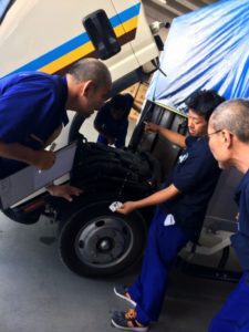 お客様のお荷物を安全に輸送させて頂くために、毎朝出発前に点呼者立ち合いのもと実施しております。