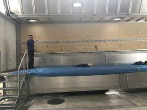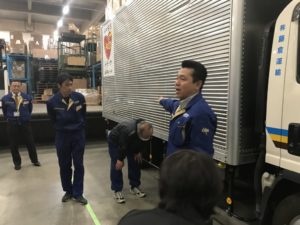 続いて実技に移りますが今回は大型トラックの荷台をステージにしました。