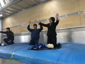 実際、配達中に外で急病人が発生してしまいAED搭載車両からAED装置を取って使用するという想定で訓練を行いました。