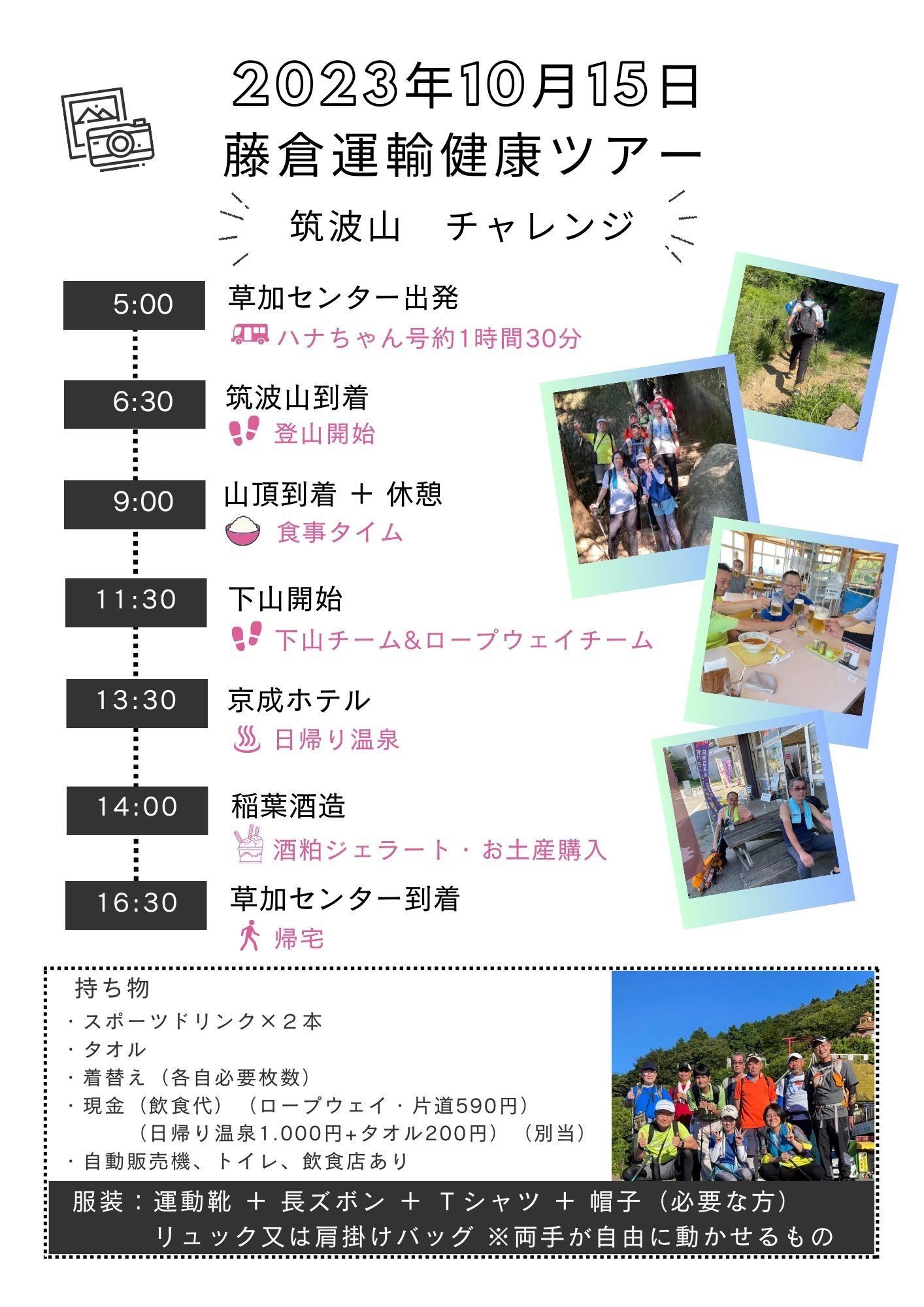 明日藤倉運輸健康ツアーで、筑波山トレッキングを予定しておりました…