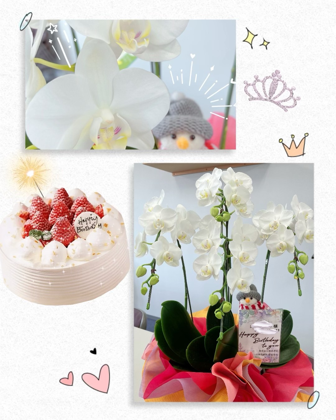 Kさんの奥様のお誕生日です🥳 社長よりお祝いの胡蝶蘭が届きました✨✨ おめでとうございます🎊🎊🎊 素敵なお誕生日をお過ごし下さい😊