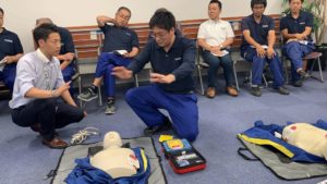 7月の全体会議はAED講習を行いました。