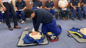 早期対応により救命率は上がる為、救急車が到着するまでに出来る事を学びました。